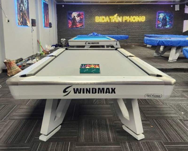 Bàn bida lỗ Windmax của Bida Tấn Phong với kích thước 1.65m x 2.9m, kết hợp mặt đá tự nhiên 3 tấm và băng Đài Loan chất lượng cao, đang trở thành lựa chọn tin cậy của nhiều câu lạc bộ và gia đình Việt Nam. Sản phẩm mang đến sự cân bằng hoàn hảo giữa chất lượng quốc tế và giá thành hợp lý.